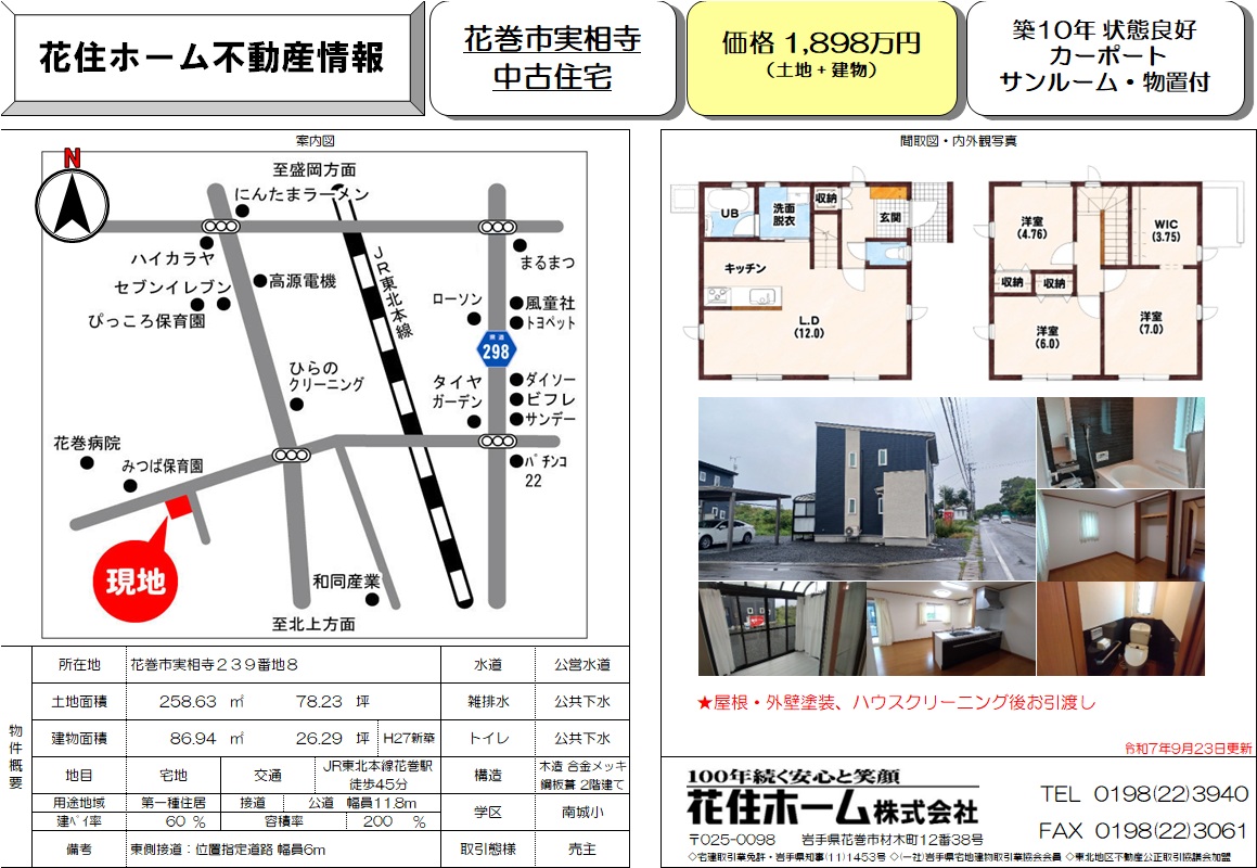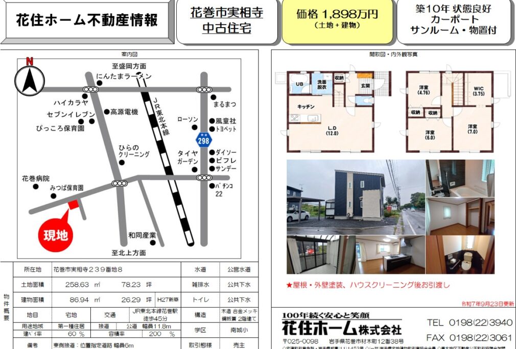 ホーム不動産情報中古【中古住宅】花巻市実相寺