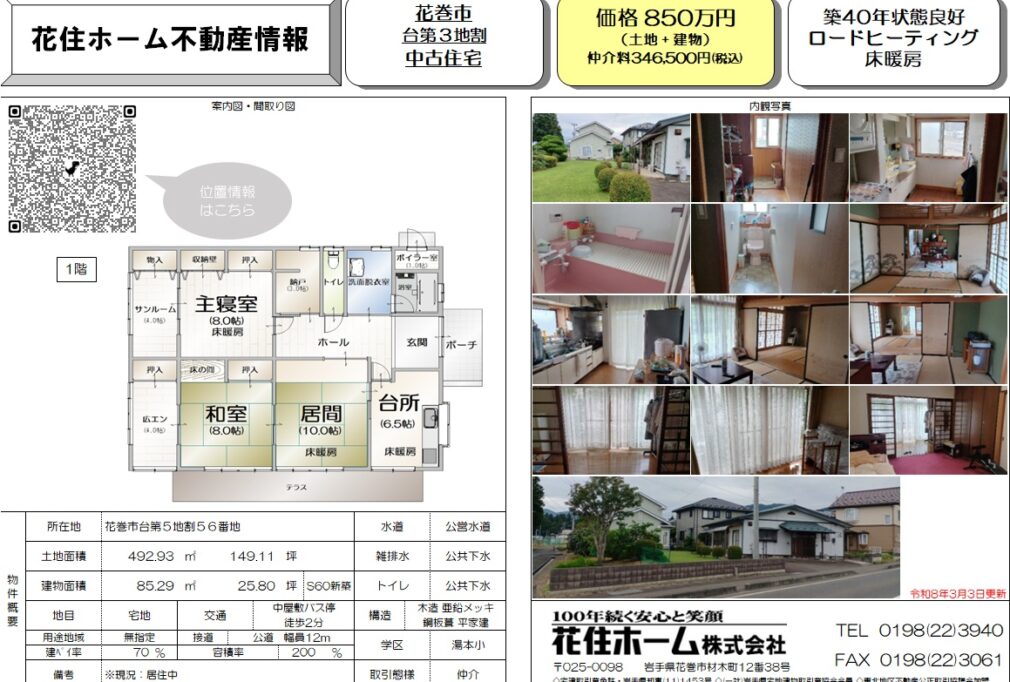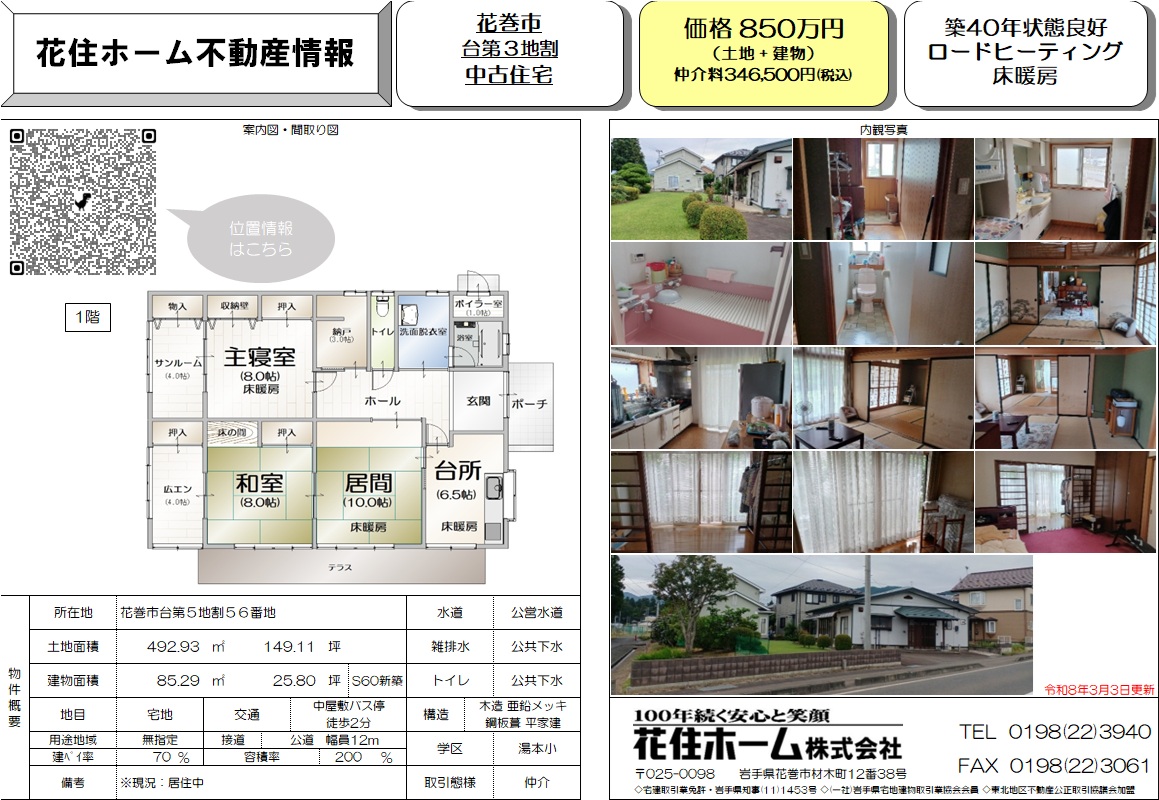 | 所在地 | 花巻市台第5地割56番地 | 価格 | 998万円 |