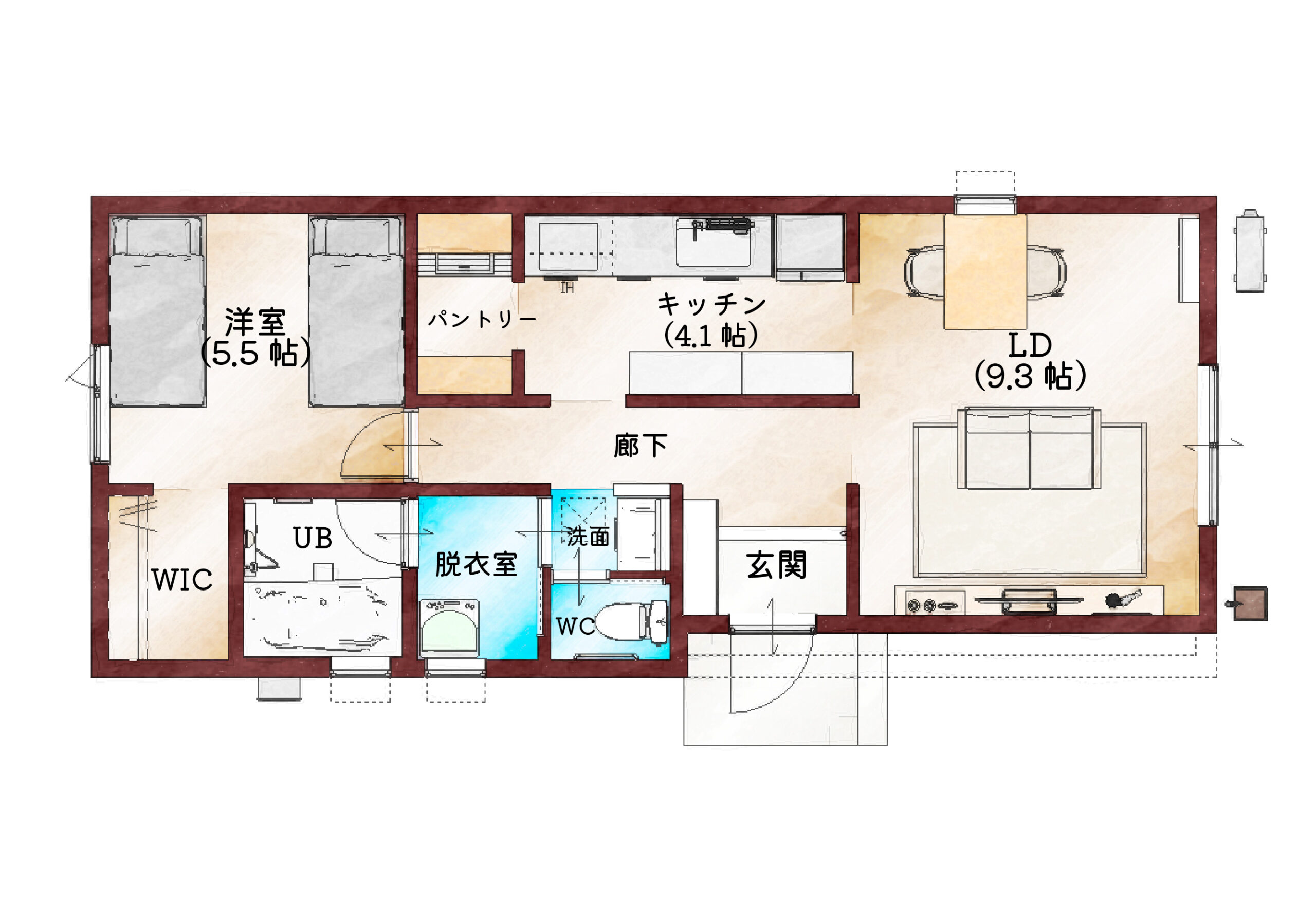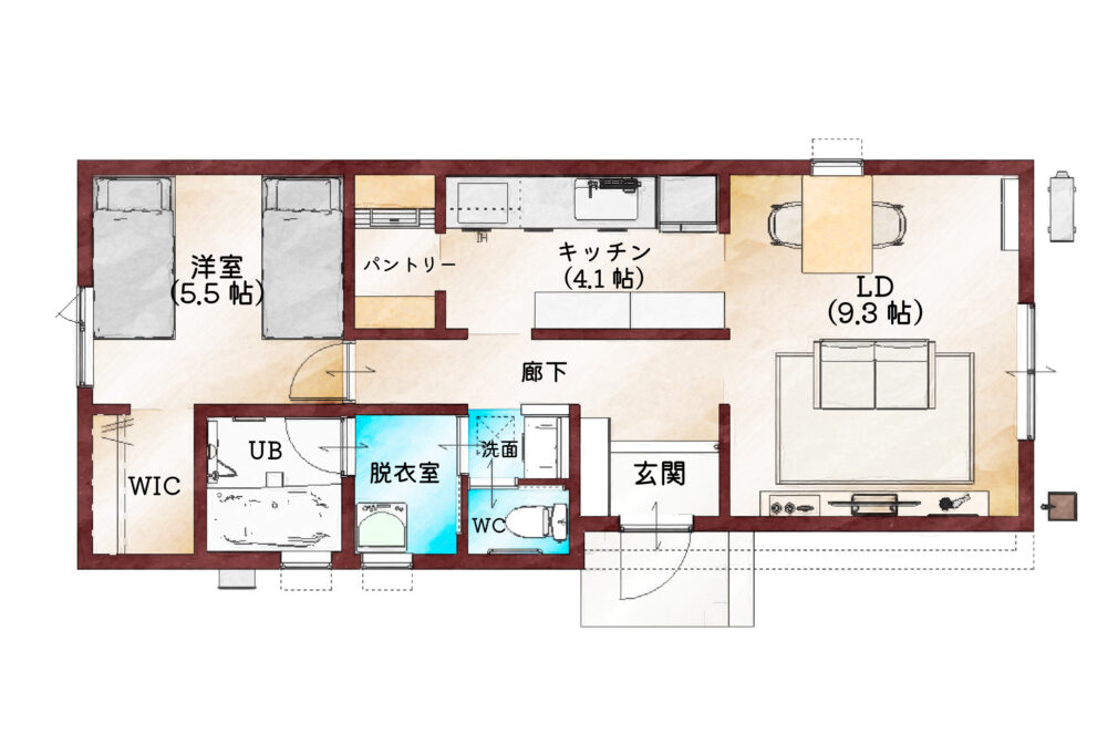 一人暮らし、二人暮らしにちょうどいいコンパクトなお家です。