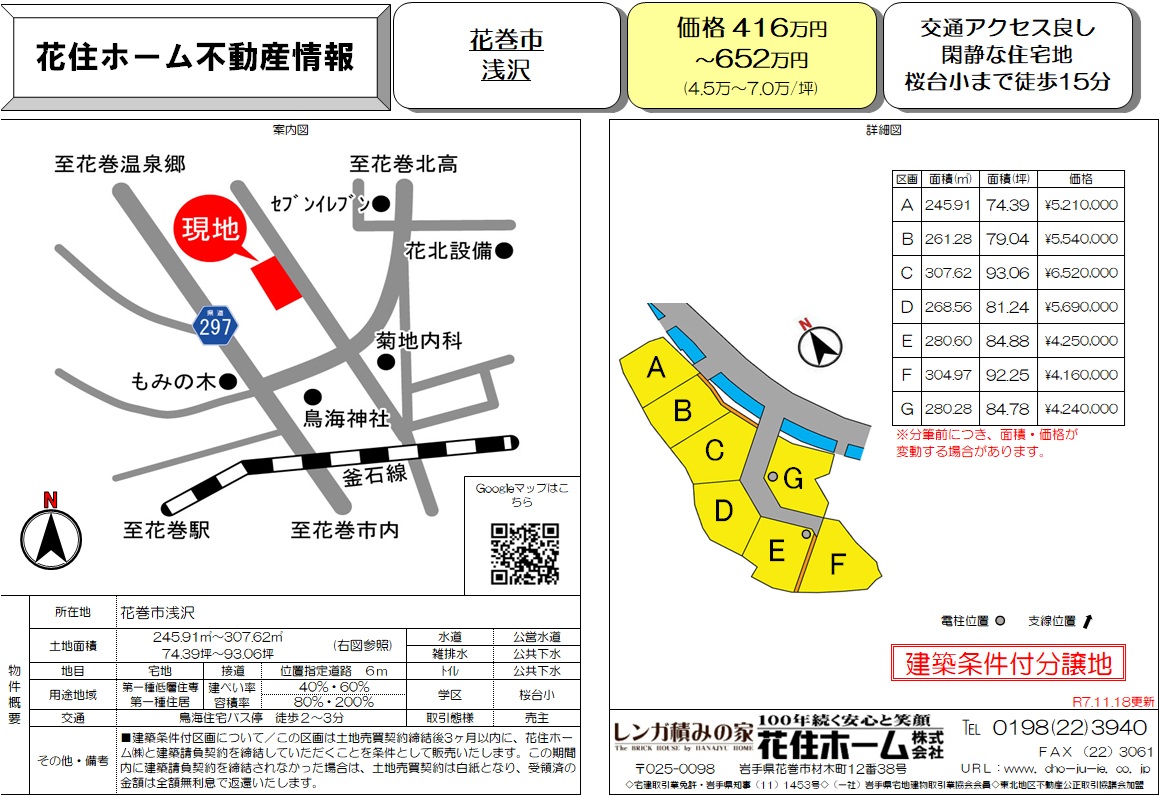 | 所在地 | 花巻市浅沢 | 価格 | 416万円~652万円 |
