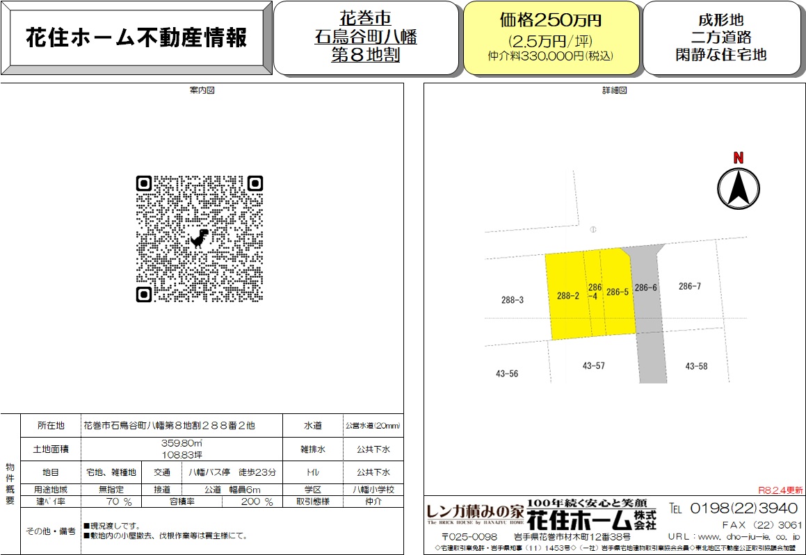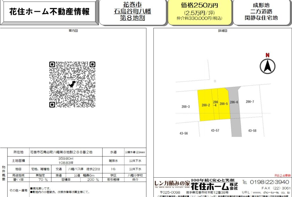 | 文教 | 八幡小・石鳥谷中 | 取引態様 | 仲介 |