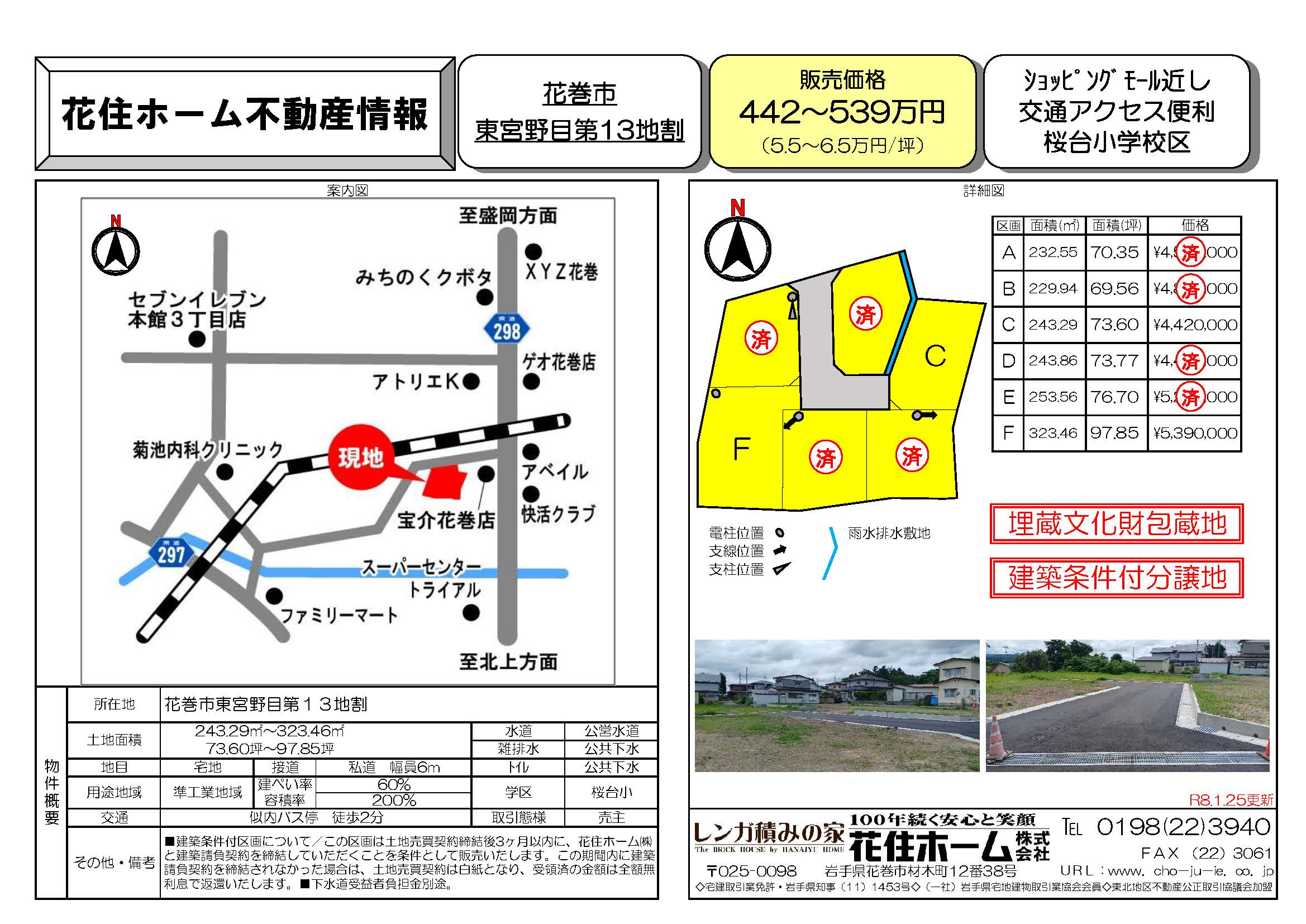 | 所在地 | 花巻市東宮野目第13地割 | 価格 | 442万円~539万円 |
