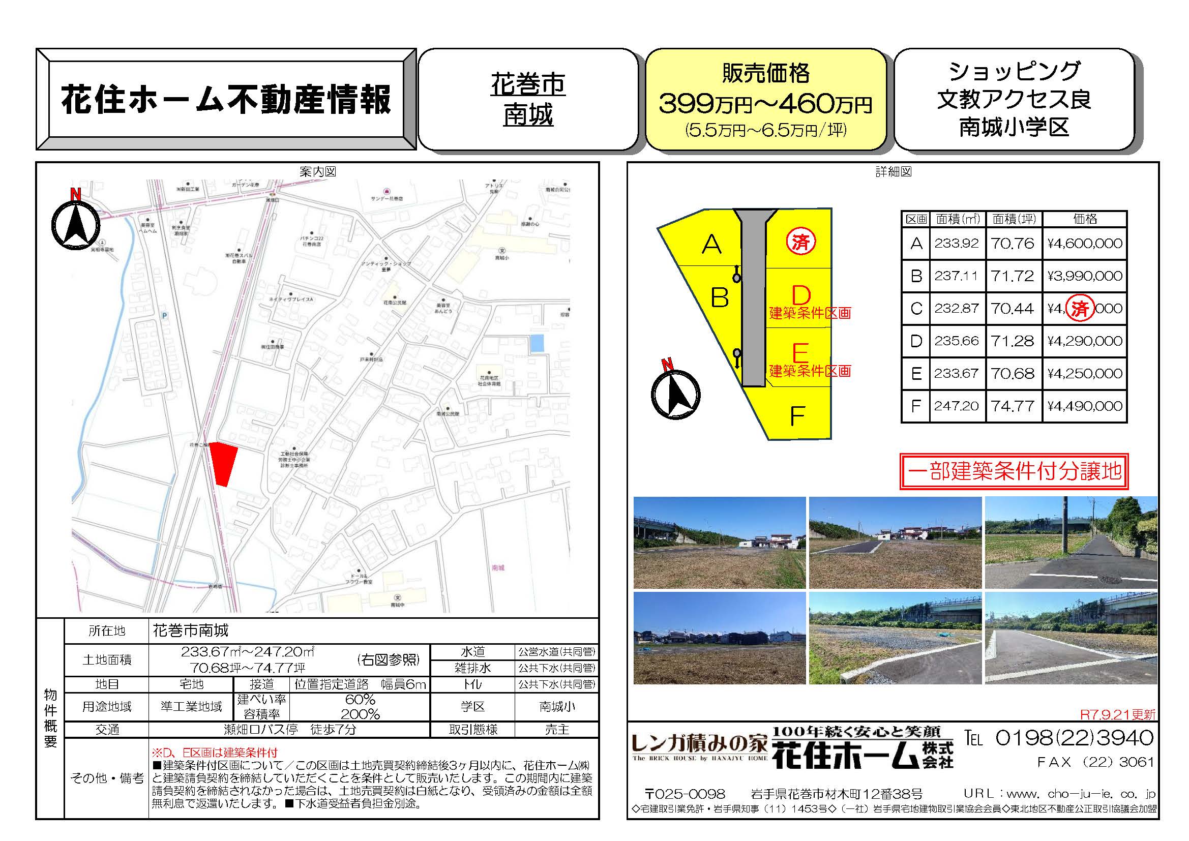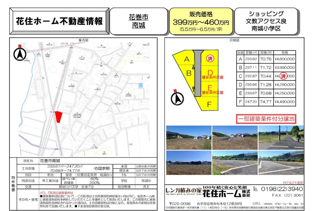 | 所在地 | 花巻市南城 | 価格 | 399万円~460万円 |