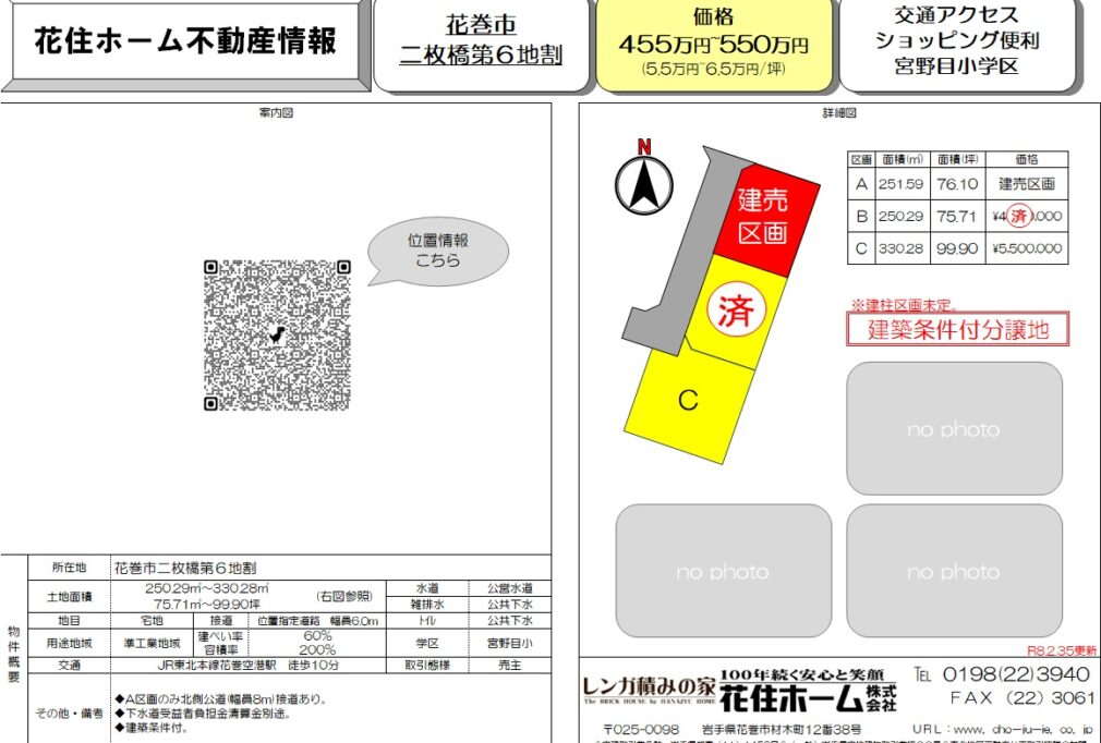 ホーム不動産情報土地/分譲【建築条件付分譲地】花巻市二枚橋第6地割