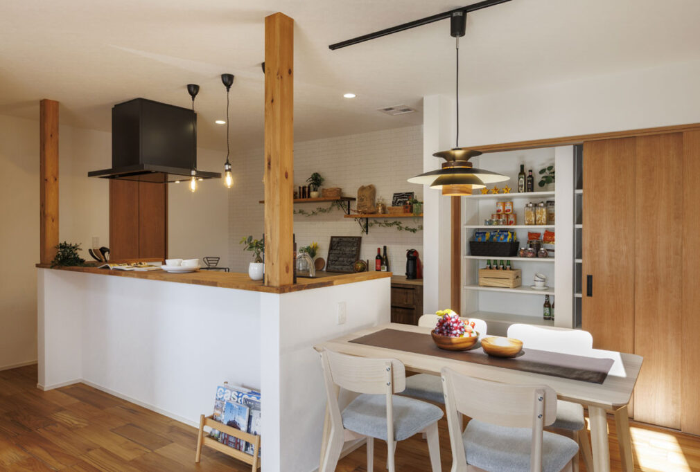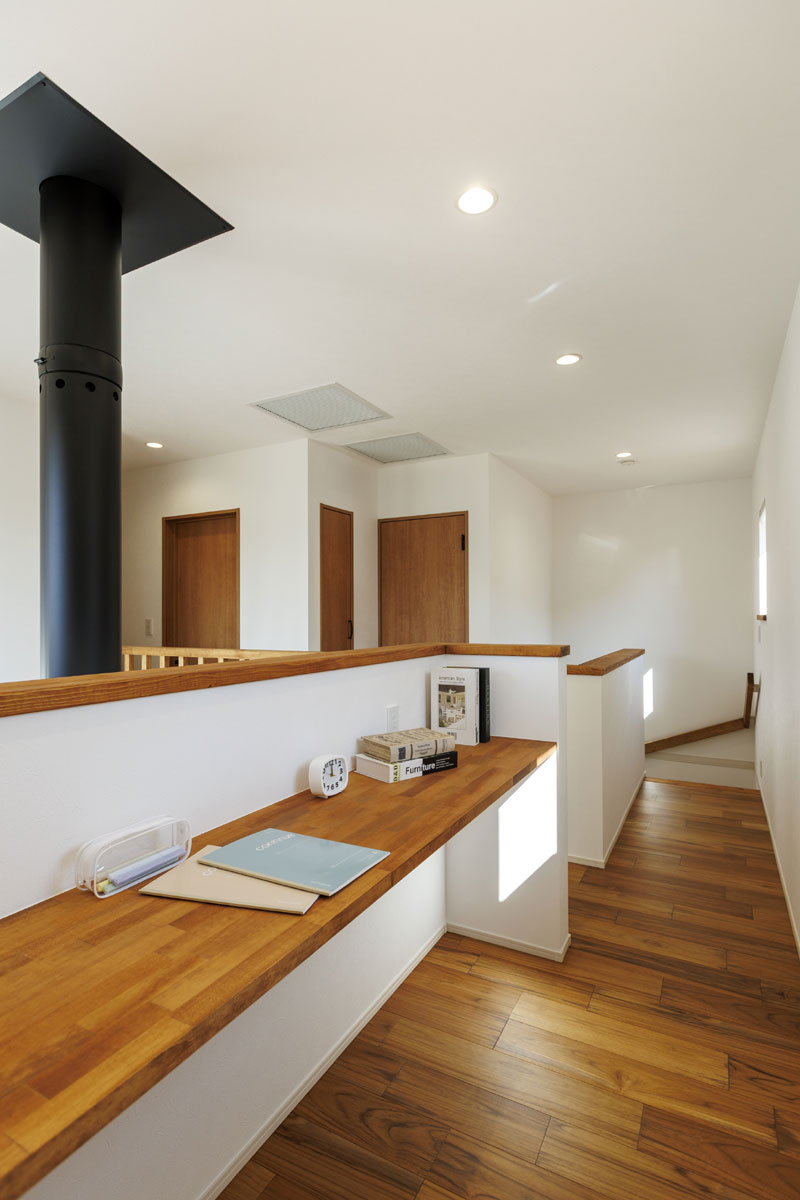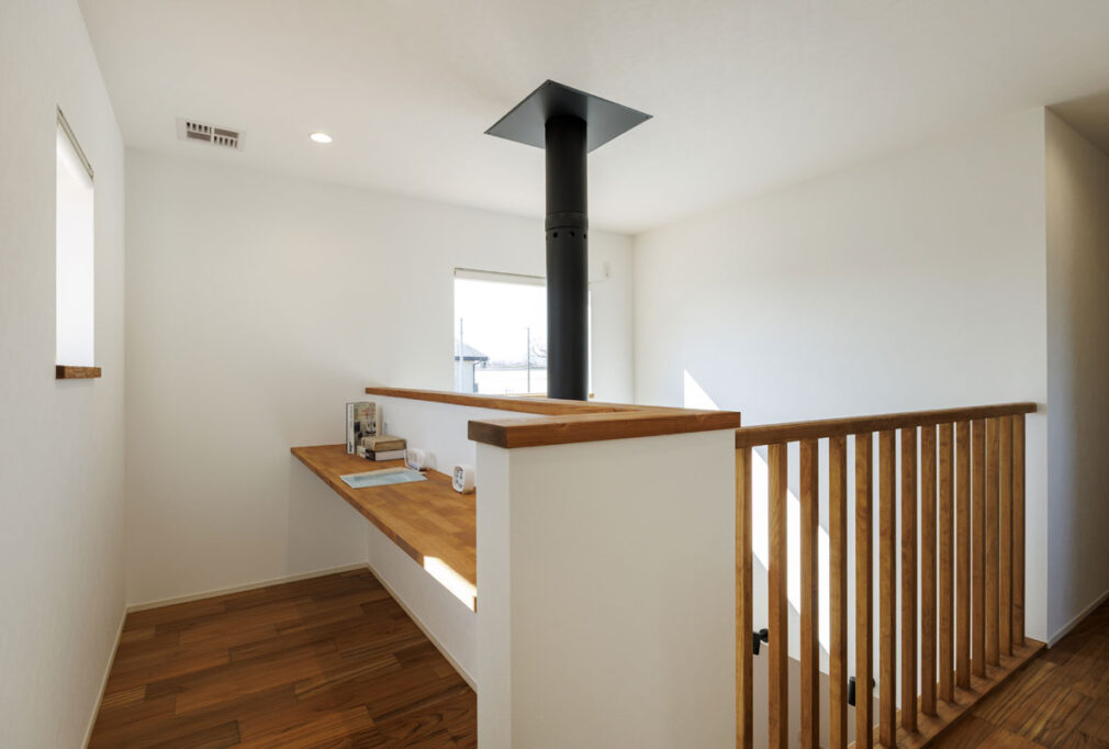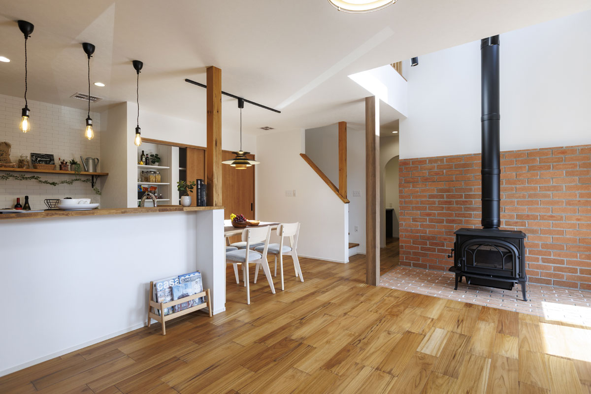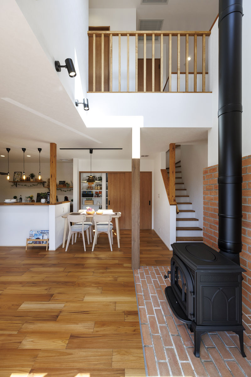 家族みんなが集まるリビングには、冬にやさしく暖めてくれる薪ストーブを設置。